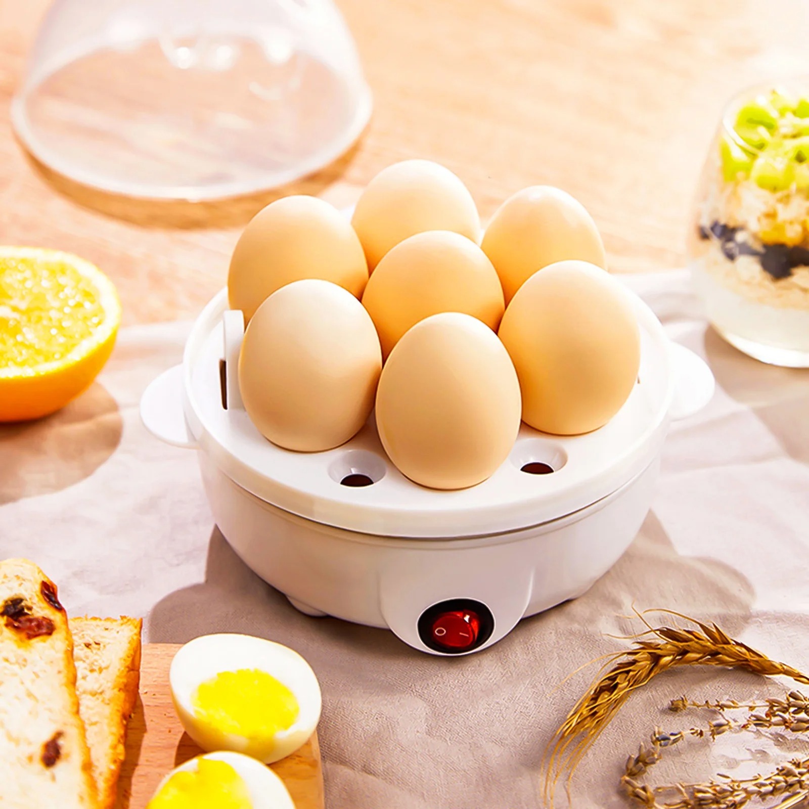 - One-Touch Operation with Auto-Shutoff: Simplicity is key. Just add water, place your eggs, press the power button, and walk away. The appliance automatically shuts off and often emits a cheerful chime when your eggs are done, preventing overcooking and giving you peace of mind.